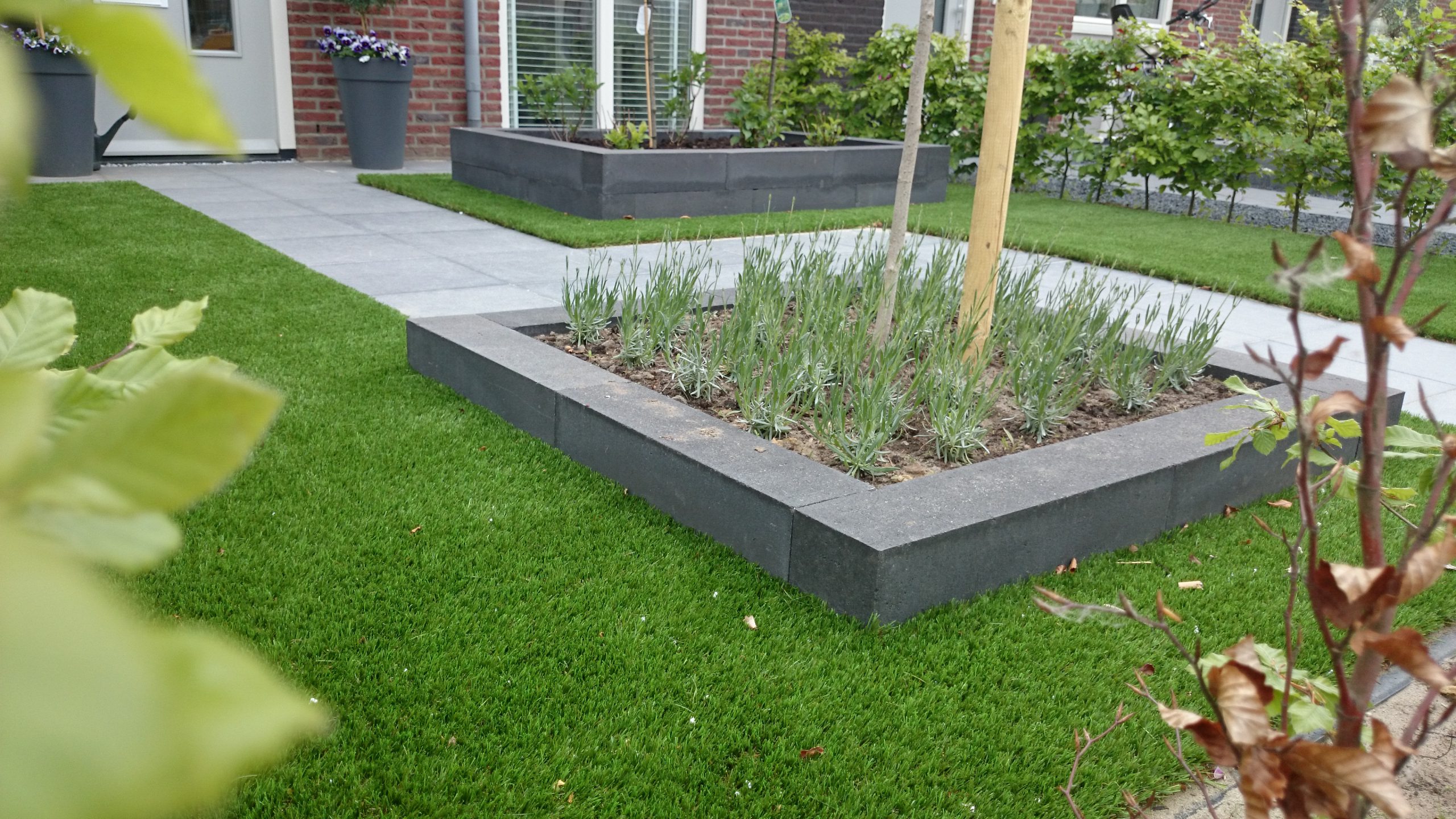altijd een groene, chique voortuin met kunstgras